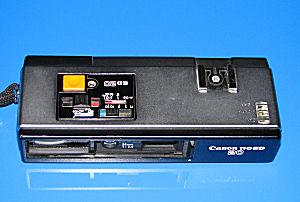 Die Canon 110ED 20 - Die Pocktekameras von Canon Mitte der 70er Jahre schockte Kodak die Kamerawelt mit einer Serie von Pocketkameras, welche klein und leicht zu bedienen war und trotzdem mit einer Bildgröße von nur 17x13 mmm eine hervorragende Bildqualität lieferte. Der Erfolg der Pocket-Kameras war so groß, dass sich selbst ein Hersteller wie Canon dem nicht entziehen konnte. So brachte Canon Anfang/Mitte der 70er Jahre eine Serie von 3 Kameras auf den Markt - die Canon 110E, 110ED und 110ED 20. Die Nr. 1 der Serie - die Canon 110ED 20 - möchte ich Ihnen hier gerne etwas näher vorstellen. Heute sind diese Pocketkameras sehr selten geworden. Sicher auch deshalb, weil schon lange keiner mehr mit Pocket-Kameras fotografiert und Filmmaterial heute (so weit ich weiß) regulär nicht mehr erhältlich ist. Die Canon-Reihe konnte mit einigen beeindruckenden technischen Merkmalen gegen die Konkurrenz punkten, von denen hier exemplarisch nur der externe Blitzschuh und die Datumseinbelichtung genannt werden sollen. Technische Daten: Erscheinungsjahr: 1975 Typ: Pocket-Kamera Objektiv: Canon 1:2 / 26 mm - viergliedriger Fünflinser Entfernungseinstellung: manuell, mittels gekuppeltem Sucher Entfernungsbereich: 0,6m - unendlich in 4 Stufen Verschluss: elektronisch - Verschlusszeiten von 2 s bis 1/1000 s Sucher: Leuchtrahmensucher mit Parallaxenmarken Anzeigen: Bildbegrenzung, Parallaxenmarken, Entfernungsmessfeld, Überbelichtung, Langzeitwarnung/Batterieprüflampe Filmtransport/Rückspulung: manuell / nicht nötig durch Kassette Messbereich: LW -1 bis LW 17 mit ASA 80 Verschlusszeiten: 2s - 1/1000 s Filmempfindlichkeit: ISO 80/20° Blitz: aufsteckbar, bis 5 Meter Spannungsquelle: Fotobatterie 6V Abmessungen: 142,2 x 56 x 29 mm Gewicht: 295 gr Besonderheiten: Blitzschuh, Datumseinbelichtung Die hier abgebildete Kamera habe ich über Ebay in Amerika ersteigert - in noch sehr gutem Zustand. Die Kameras der 110er-Serie unterschieden sich geringfügig in Ausstattungsdetails und werden vielleicht irgendwann hier komplett präsentiert - wenn sie denn noch zu finden sind. Die Canon 110ED finden Sie bereits hier auf einer anderen Seite - es fehlt noch das Basismodell 110E. |