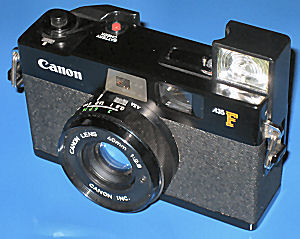Die Canon A35F - Vollautomatisch belichtete Fotografie Die Canon A35F ist eine Weiterentwicklung der damals schon legendären Canonet-Baureihe. Sie ist eine sigenannte "Point & Shoot" - Kamera, also anvisieren un auslösen. Dies zeigt sich insbesondere an zwei Ausstattungsdetails: Dem Blitz und der vollautonatischen Belichtung. Canon hat mit diesem Fotoapparat erstmals eine Kleinbildkamera mit einem eingebauten Blitz ausgestattet, welcher sich mit einem Druckknopf auf der Kamerarückseite nach oben ausklappen lässt, wie auf den Bildern links zu sehen ist. Noch dazu ist der Blitz mit der EE-Automatik ausgestattet, welche die Blitzintensität mit der eingestellten Entfernung koppelt. Die Kamera liefert mit ihrer sehr gut programmierten Belichtungsautomatik und dem hervorragenden Objektiv ausgezeichnete Bilder. Ihr nachschwarzer Look und ihre hervorragenden Nachtaufnahme-Eigenschaften brachten ihr den Spitznamen "Nighter" ein. Technische Daten: Erscheinungsjahr: 1978 Typ: Kleinbild-Sucherkamera Objektiv: Canon 1:2,8/40 mm Entfernungseinstellung: manuell Entfernungsbereich: 0,8 m - unendlich Verschluss: Programmverschluss - Lamellen dienen gleichzeitig als Blende Sucher: Leuchtrahmensucher mit Parallaxenmarken Anzeigen: Bildbegrenzung, Parallaxenmarken, Blendenskala mit Messnadel Filmtransport/Rückspulung: manuell Selbstauslöser: einschaltbar über Selbstauslöserhebel, Vorlauf 10 s Verschlusszeiten: 1/8 - 1/500 s Filmempfindlichkeit: von ISO 25/15° - 400/27° Blitz: manuell zuschaltbar Spannungsquelle: Mignonzelle 1,5V und Knopfbatterie 1,35V Abmessungen: 123 x 75 x 54 mm Gewicht: ca. 500 gr Die Canon A35F ist einer sehr schöne, schlichte, schwere Kamera - quasi unverwüstlich. Vielleicht kam sie zu einem etwas ungünstigen Zeitunkt auf den Markt, kurz darauf wurden nämlich die ersten Kleinbildkameras mit Autofokus vorgstellt. Vielleicht ist sie auch deshalb heute etwas selten anzutreffen auf dem Gebrauchtmarkt - speziell in einem so guten Zustand wie die hier abgebildete Kamera. |