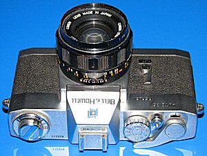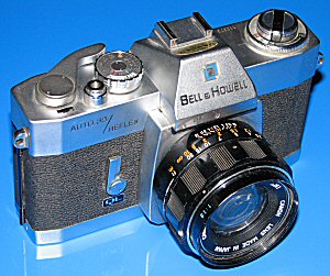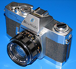 Die Besonderheit der Bell&Howell Auto35 (wie bei der Canon EX EE und EX Auto): Das vordere Linsenglied lässt sich abschrauben und durch einen anderen Vorsatz austauschen. So erreichte man bei diesen Kameras verschiedene Brennweiten. Da diese beiden Kameras sehr frühe Kameras mit Belichtungsautomatik waren, konnte man so eine feste Blende einbauen - die Einstellung der Blende von Hand erfolgte am oberen linken Drehknopf an der Kamera und nicht etwa am Objektiv. Diese Kameratypen sind heute sehr selten und auf dem Gebrauchtmarkt rar und entsprechend gesucht - insbesondere das Zubehör, zu welchem Sie über den Link unten gelangen. |