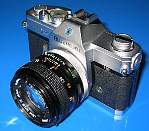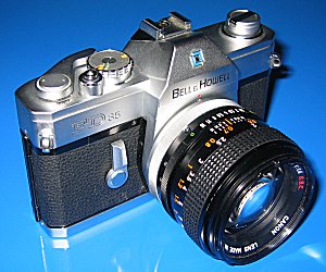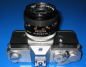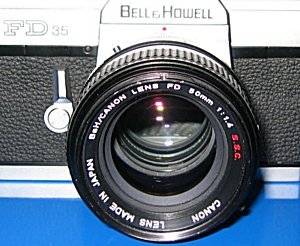 Meine Canon / Bell & Howell FD 35 "Bell & Howell hatte 1972 noch die amerikanische Canon Vertretung inne, doch wurde dieses Verhältnis im Laufe des Jahres gelöst und Canon baute seinen eigenen Vertrieb auf. Offensichtlich war Bell & Howell noch an Kameras interessiert und veranlasste Canon, zwei Modelle speziell für den amerikanischen Markt zu bauen. Die eine war die Bell & Howell Auto 35 Reflex (nichts anderes als eine Canon EX-EE mit anderer Bezeichnung). Ähnlich war es mit der Bell & Howell FD 35, bei der es sich um eine unter anderer Flagge segelnde Canon TLb handelte. Allerdings nahm Canon einige kosmetische Änderungen vor, um sie abzusetzen. So hatte die Bell & Howell einen verchromten Verschlusszeitenknopf und einen Chromring unter dem Rückspulknopf, während beide in der Canon TLb schwarz waren. Die Bell & Howell verfügte über einen Mittenkontakt, die TLb lediglich über einen einfachen Zubehörschuh. Ansonsten jedoch waren beide Kameras identisch. Vielleicht wegen des Mittenkontakts der Bell & Howell FD 35 brachte Canon auch unter eigenem Namen eine Kamera mit denselben Features wie die Bell & Howell heraus, die Canon TX. Sie unterscheidet sich nur in einem schwarzen Ring unter dem Rückspulknopf. Sie wurde 1975 eingeführt, ersetzte die TLb jedoch nicht, sondern lief parallel zu ihr." (Aus dem Buch: Canon Handbuch - Das komplette Canon System) Technische Daten: Vorstellung: 1972 Typ: Einäugige Spiegelreflexkamera Objektivanschluss: FD-Bajonett Sucheranzeige: Mikroprismenring, Messnadel + Nachführzeiger, Arbeitsblende Messzelle: CdS Arbeitsbereich: Lichtwert 3 - 16 Innenmessung: Arbeitsblende Filmempfindlichkeitsbereich: 25 - 2000 ASA Funktionen: manuell Verschluss: horizontal ablaufender Tuchschlitzverschluss Zeitenbereich: 1 - 1/500 s, B Blitzsynchronzeit (X): 1/60 s Sonstiges: Batterieprüfung Maße (BxHxT): 144 x 93 x 43 mm Gewicht: 680 gr Diese Kamera hat eine gewisse Exotenstellung in meiner Sammlung - ist sie doch keine echte Canon-Kamera. Aber sie ist doch immerhin "so sehr" Canon, dass ich sie trotzdem in meine Sammlung aufgenommen habe. Eben durch die Besonderheit eines anderen Namens ist sie auch etwas besonderes in meiner Sammlung. Ein weiteres Kuriosum entdecken Sie übrigens auf dem Bild links unten, wenn es auch mehr zu erahnen als zu lesen ist. Erst als ich die Kamera in Händen hielt, ist mir zum ersten Mal aufgefallen, dass Bell & Howell ganz offensichtlich auch Canon-Objektive in Lizenz gebaut hat - wie sonst ist zu erklären, dass das zur Kamera gehörende Objektiv die folgende Bezeichnung trägt: B&H/Canon Lens FD 50mm 1:1,4. Natürlich passte daher auch das Canon-FD-Zubehör weitgehend an diese Kamera und selbstverständlich passen auch alle Canon FD-Objektive an die Bell & Howell FD35. |