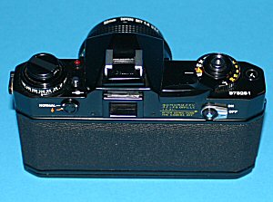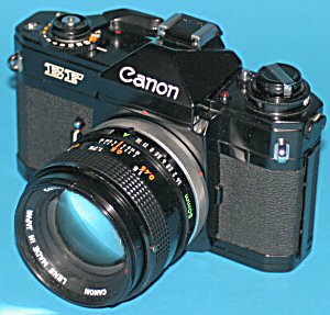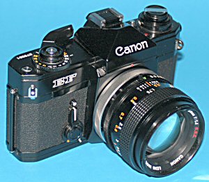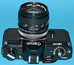 Technische Daten: Erscheinungsjahr: 1973 Kameratyp: Einäugige Kleinbild-Spiegelreflexkamera mit Belichtungsautomatik und Schlitzverschluss Feststehendes Dachkantprisma Sucheranzeige: Blendenskala mit Blendenanzeiger, Über- und Unterbelichtungs-Warnmelder, Index für Arbeitsblendenmessung, Verschlusszeitenskala und -gabel Einstellscheibe: Vollmattscheibe mit Stufenlinse; Schnittbildindikator mit Microprismenring Gesichtsfeld: 93% des effektiven Bildfeldes Vergrösserung: 0,82fach Elektromechanischer Verschlusss: Vertikal ablaufender Schlitzverschluss für Zeiten von 1/2 s bis 1/1000 s und B in 11 Stufen (mechanisch gesteuert) sowie 30 bis 1 s in 6 Stufen (elektronisch gesteuert)Verschlusszeitenrad: B, 1-1/1000 s weisse Gravur; 1/125 s (X-Kontakt) orangefarbene Gravur; 30-2 s gelbe Gravur Langzeitanzeige: Leuchtdiode, blinkt bei langen Verschlusszeiten ab 1s Selbstauslöser: Eingebaut. Vorlaufzeit ca. 10 s. Belichtungseinstellung: Blendenautomatik und manuell Schwerpunkt der Messung auf die Bildmitte. Kupplungsbereich Belichtungsmessers: Von Lichtwert -2 bis 18 bei 21 DIN Filmempfindlichkeit: von 12 DIN bis 36 DIN (12 ASA bis 3200 ASA) Spannungsquelle: Zwei Quecksilberbatterien 1,3 Volt Messwertspeicherung: durch Knopfdruck Blitzsynchronisation: X-Synchronisation bei 1/125 s und längeren Zeiten Mehrfachbelichtungen: Durch bloßen Knopfdruck bei Bestätigung des Schnellschalthebels möglich. Beliebig oft wiederholbar. Bildzählwerk zählt nur effektiven Filmtransport und zeigt damit richtig an. Objektfassung: Canon-Wechselbajonett für fD-, FL- und R-Objektive Schärfentiefenkontrolle: Durch Druck auf Mehrzweckhebel möglich Leerschalt-Automatik: Film kann ohne Betätigung des Auslösers bis Bild 1 transportiert werden. Leeraufnahmen sind nicht erforderlich. Mehrschlitzspule für schnelles Filmeinlegen. Schnellschalthebel: Für Einzelschwung um 120°, mit Bereitschaftsstellung in 15°. Hebel nimmt Bereitschaftstellung beim Einschalten der Kamera automatisch ein. Rückspulung des Films: Mittels Freilaufknopf und Rückspulkurbel Bildzählwerk: Mit Gravur S und 1-38. Selbstrückstellend beim Öffnen der Kamerarückwand Gehäuseabmessungen: 151 mm x 96 mm x 48 mm Gewicht des Gehäuses: 740 g | |||||||||||||||||||||||||||||||||||||||||||||||||||||||||||||||||||||||||||||||||||||