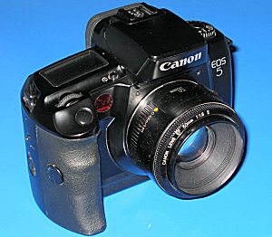 Meine Canon EOS 5 "Zum ersten Mal verteilte Canon (1992) fünf AF-Meßfelder horizontal über das Bildfeld. So kann die Kamera automatisch auf jeden von fünf Messpunkten im Bild fokussieren, wobei sie intern entscheidet, welches dieser Meßfelder zur Anwendung kommen sollte. Das jeweils gewählte Fokussierfeld wird durch rotes Aufleuchten angezeigt. Die Einstellscheiben der EOS 5 können dessen ungeachtet jederzeit ausgewechselt werden. Was diese Kamera so futuristisch macht, ist die augengesteuerte automatische Scharfeinstellung. Durch spezielle Infrarot-Sensoren am Okular ist die EOS 5 in der Lage, der Augenbewegung des Fotografen zu folgen und jenen AF-Sensor zu aktivieren, auf den der Blick des Fotografen gerichtet ist. Weil die Form des Augapfels individuell sehr unterschiedlich ist, muss die Kamera zuerst auf das Auge des Benutzers eingestellt werden. Nach dieser Kalibrierung ist die Kamera unglaublich schnell. Ein Blick auf die gewünschte Stelle - und die Kamera hat fokussiert. Und wenn man die Schärfentiefe kontrollieren möchte, genügt bei angetipptem Auslöser ein Blick auf ein kleines Symbol in der linken oberen Ecke des Suchers - sofort blendet das Objekitv ab. Leider kann die EOS 5 aus Gründen der Speicherkapazität nur im Querformat augengesteuert fokussieren - bei Schwenk ins Hochformat schaltet sie auf automatische Meßfeldwahl. Auch die EOS 5 besticht durch den für moderne Canon Kameras typischen, extrem niedrigen Geräuschpegel. Das Gehäuse der EOS 5 ist das Ergebnis der Bemühungen Canons, eine noch leichtere, doch widerstandsfähigere Kamera zu schaffen. Das Grundgehäuse ist ein Spritzgußteil aus fiberglasverstärktem Thermoplast, andere Teile aus graphitfaserverstärktem Material. Die EOS 5 ist mit einem Klappblitz ausgestattet, welcher motorisch aus- und einklappt und der innerhalb eines Bereiches von 28 bis 80 mm mitzoomt." (aus: Canon Handbuch - Das komplette Canon System, Laterna-Magica-Verlag) Technische Daten: Erscheinungsjahr: 1992 Typ: Einäugige Spiegelreflexkamera Fokussierung: Einstellbarer Einzel-AF, Prädiktions-AI-Servo-AF, Manuell Messfeld: ||+|| AF-Arbeitsbereich: Lichtwert 0 - 18 Sucher-Vergrößerung: 0,73-fach Sucher-Gesichtsfeld: 94% Schärfentiefen-Kontrolle im Sucher möglich Belichtungs-Messsektoren: 16 Stück Belichtungs-Messsystem: Selektiv-, Spot-, mittenbetonte Integralmessung Belichtungs-Messbereich: Lichtwert 0 - 20 Filmempfindlichkeit (ASA): 6 - 6400 Belichtungsfunktionen: Intelligente Programmautomatik mit Shift, Blendenautomatik, Zeitautomatik, Schärfentiefenautomatik, Handeinstellung, Motivprogramme, Blitzautomatik A-TTL Spezielle Funktionen: Belichtungsreihenautomatik, Belichtungskorrektur, Messwertspeicherung, Langzeitbelichtungen, Mehrfachbelichtungen Verschluss-Zeitenbereich: 1/8000 - 30 s Kürzeste Synchronzeit: 1/200 s Schärfenpriorität oder Auslösepriorität Filmtransport, max. Bildfrequenz: 5 Bilder/s Filmtransport, max. Bildfrequenz in AI-Servo-AF: 3 Bilder/s Eingebauter Blitz: Zoomreflektor 28-80mm, Leizahl 4,3 - 5,6, Blitzbelichtungskorrektur, Synchronisation auf 2. Verschlussvorhang Weitere Merkmale: 16 Individualfunktionen, Spiegelvorauslösung, Fernsteuerung über Kabel, Abblendfunktion, Daumenrad, 6 auswechselbare Einstellscheiben Abmessungen (BxHxT): 154 x 121 x 75 mm Gewicht (ohne Batterien): 675 g Die Canon EOS 5 ist ein weiterer Meilenstein im Canon-Programm, vereinigte sie doch so innovative und futuristische Funktionen in sich wie z.B. intergierter Zoom-Blitz, High-Speed-Motor, fünf Meßfelder mit augengesteuertem Autofokus, und viele andere mehr. Erstaunlich, wie wenig Geld man heute ausgeben muss, um sich gebraucht eine Kamera zu ersteigern, die noch vor nicht einmal 10 Jahren eine sehr teure Profikamera war und bis vor kurzem sogar noch offiziell im analogen Canon-Programm angeboten wurde. Die Bilder zeigen die EOS 5 mit dem Normalobjektiv 1:1,8/50 mm. |