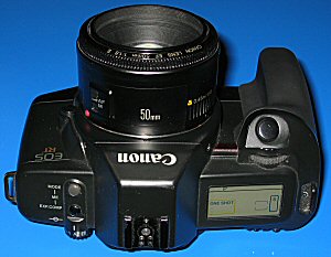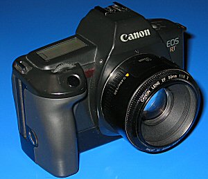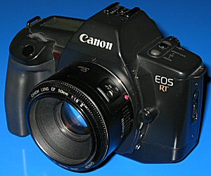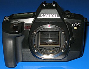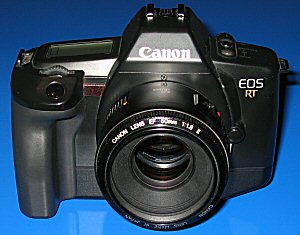 Meine Canon EOS RT "Kurz nach der Einführung der EOS 600 bot Canon eine ungewöhnliche Modifikation dieser Kamera an. In dieser, der Canon RT (für Real Time) war der Schwingspiegel durch einen Pellicle-Spiegel ersetzt worden. Im Gegensatz zum Folien-Pellicle der Canon Pellix handelte es sich hier jedoch um einen teilverspiegelten Glasspiegel, der wesentlich dauerhafter war. Er ließ 65% des Lichts zum Film durch und spiegelte 35% in den Sucher. Mit Ausnahme des feststehenden Spiegels war die EOS RT mit der 600 identisch und wurde auch mit der Anleitung der EOS 600 geliefert. Die EOS RT eignet sich hervorragend für die Sportfotografie, denn sie zeigt das Objekt bis zur tatsächlichen Belichtung. Zudem zieht sie bis zu 5 Bilder in der Sekunde durch. Trotz der Tatsache, dass nur etwa ein Drittel des einfallenden Lichts in den Sucher gelangt, wirkt das Sucherbild nur geringfügig dunkler als in der EOS 600." (aus: Handbuch - Das komplette Canon System, Verlag: Laterna magica) Technische Daten: Erscheinungsjahr: 1989 Typ: Einäugige Spiegelreflexkamera Fokussierung: Einstellbarer Einzel-AF, Prädiktions-AI-Servo-AF, Manuell AF-Arbeitsbereich: Lichtwert 1 - 18 Sucher-Vergrößerung: 0,80-fach Sucher-Gesichtsfeld: 94% Schärfentiefen-Kontrolle im Sucher möglich Belichtungs-Messsektoren: 6 Stück Belichtungs-Messsystem: Selektivmessung, Mittenbetonte Integralmessung Belichtungs-Messbereich: Lichtwert -0,5 - 20 Filmempfindlichkeit (ASA): 6 - 6400 Belichtungsfunktionen: Intelligente Programmautomatik mit Shift, Blendenautomatik, Zeitautomatik, Schärfentiefenautomatik, Handeinstellung, Blitzautomatik Spezielle Funktionen: Belichtungsreihenautomatik, Belichtungskorrektur, Messwertspeicherung, Langzeitbelichtungen, Mehrfachbelichtungen Verschluss-Zeitenbereich: 1/2000 - 30 s Kürzeste Synchronzeit: 1/125 s Schärfenpriorität oder Auslösepriorität Filmtransport, max. Bildfrequenz: 5 Bilder/s Filmtransport, max. Bildfrequenz in AI-Servo-AF: 3 Bilder/s Weitere Merkmale: 15 Individualfunktionen, Fernsteuerung über Kabel, Ablendtaste, Daumenrad, Auswechselbare Einstellscheiben, Echtzeit-Auslöser, Pelliclespiegel Abmessungen (BxHxT): 148 x 108,3 x 67,5 mm Gewicht (ohne Batterien): 660 g Die Canon EOS RT ist eine eher seltene Kamera im EOS-Programm, was auch daran liegt, dass sie durch ihren Pellicle-Spiegel um einiges teurer war als eine normale EOS 600. Auch war wohl der Adressatenkreis für eine solche technische Spezialität kein sehr großer. Umso mehr war die Kamera deshalb für mich zum Sammeln interessant. Auch deswegen, weil ich mit der Canon Pellix und der Canon Pellix QL schon zwei Kameras im Sortiment habe, die quasi als Vorfahren der Canon EOS RT gelten können. Das linke untere Bild zeigt die Besonderheit dieser Kamera, den Pellicle-Spiegel. Dieser ist sichtbar teildurchlässig - sieht sehr interessant aus. Tatsächlich dunkelt das Sucherbild beim Auslösen nicht ab. Lediglich der hinter dem Spiegel angebrachte Umlenkspiegel für die Lichtmessung klappt nach unten weg - das Bild bleibt. Die Kamera ist durch den fehlenden Spiegelschlag tatsächlich unglaublich leise und vibrationsarm. |