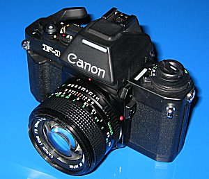 Die Canon newF-1 - Inbegriff der Zuverlässigkeit "Erfahrung lässt sich nicht verleugnen. Sie zeigt sich ebenso in der Arbeit eines Profis wie in den Geräten, die er einsetzt. Und Erfahrung ist es auch, die jedes einzelne der Präzisionsteile der neuen Canon F-1 ausstrahlt. Der bewährten Tradition folgend, die das Vorgängermodell der F-1 über ein Jahrzehnt lang begründete, weist auch die neue Canon F-1 all jene Funktionen und Eigenschaften auf, die ihrer Vorgängerin zu weltweiter Anerkennung als einer Kamera verhalfen, die jeder wirkliche Profi besaß - oder die er sich im stillen wünschte. Doch der Fortschritt - das Gegenstück der Tradition - schlägt sich ebenso unübersehbar in der neuen F-1 nieder - in Form einiger revolutionärer technischer Neuerungen, die Ihnen dazu verhelfen sollen, selbst die schwierigsten fotografischen Aufgaben zu lösen. Zuverlässigkeit, Vielseitigkeit und Dauerhaftigkeit - sie sind die Voraussetzungen für eine professionelle einäugige Reflexkamera und alle wichtigen Bestandteile der neuen F-1. Ein Jahrzehnt enger Zusammenarbeit mit Spitzenfotografen hat uns genauen Aufschluss darüber gebracht, was diese wohl anspruchsvollsten Lichtbildner wirklich brauchen. Hierfür sprechen nicht nur die eben genannten Eigenschaften der neuen F-1, sondern auch die umfangreiche Palette an Objektiven und Zubehör, die das System der neuen F-1 bilden. Die neue Canon F-1 - von Profis konstruiert, von Profis gebaut." (Auszug aus dem Original-Prospekt der Canon newF-1 von 1981) Technische Daten: Erscheinungsjahr: 1981 Kameratyp: einäugige Spiegelreflexkamera im Kleinbildformat Wechselobjektive: Canon FD-Bajonett Betriebsarten: Nachführmessung, Blenden-/Zeitautomatik zubehörabhängig Sucher: auswechselbarer Prismensucher Sucheranzeigen: Blendenskala, Fehlbelichtnugswarner, Messnadel, Messkelle, Batterieprüfer, Arbeitsblendenindex, Verschlusszeit wird eingespiegelt, Blitzsymbol, mit AE-Sucher: Anzeige der Belichtungszeit Sucherbeleuchtung: möglich in Stellung LIGHT des Meßwert-Zeitschalters Okularverschluss: eingebaut Einstellscheibe: serienmäßig mit Schnittbildindikator und Mikroprismenring auswechselbar gegen 32 verschiedene Auswechselscheiben Messsystem: Innenmessystem mit Siliziumzelle Messcharakteristik: mittenbetonte Integral- , Selektiv-, Spotmessung in Abhängigkeit von der eingelegten Einstellscheibe Messbereich: von Lichtwert -1 bis 20 Belichtungskorrektur: +/- 2 Stufen in Drittelstufen Verschluss: horizontal ablaufender Titan-Schlitzverschluss mit vier Achsen Elektromechanische Hybridsteuerung: mechanisch von 1/90 bis 1/2000 und "B", elektronisch von 1/60 bis 8s Filmempfindlichkeitsbereich: 6 bis 6400 ASA (9 bis 39 DIN) Auslöser: elektromechanischer Zweistufenauslöser, ohne Batterie mechanisch Selbstauslöser: elektronisch gesteuert, Vorlaufzeit 10 s Blitzsynchronisation: Zeiten bis 1/90 s mit Elektronenblitz, Mittenkontakt Blitzautomatik: CATS (Canon Auto Tuning System) mit Canon-Speedlites Schnellschalthebel: Aufzugswinkel 139°, Bereitschaftsstellung bei 30° Sonstiges: Abblendtaste, Mehrfachbelichtungen, abnehmbare Rückwand Abmessungen (BxHxT in mm): 146,7 x 48,3 x 96,6 mm Gewicht: 795 g (Gehäuse) Kaufpreis ca. 1.800 DM Ich habe meine Canon F-1 gebraucht bei einem Fotohändler erstanden. Ich konnte einfach nicht widerstehen, weil die F-1 in einem außergewöhnlichen Erhaltungszustand ist - minimalste Abschürfungen über den Gurtösen und sonst wie neu. Das ist sehr ungewöhnlich für eine Profikamera nach über 20 Jahren, da die meisten als Werkzeug strapaziert wurden und entsprechend aussehen. Der Zustand ist an den Bildern gut zu sehen. Eine große Besonderheit ist der auswechselbare Sucher, wie auf dem untersten Bild zu sehen ist - das ist heute nur noch bei Mittelformatkameras üblich, nicht einmal mehr im Profibereich bei den Kleinbildkameras. Diese Kamera ist mit dem Automatik-Sucher FN ausgestattet, welcher aus der Kamera einen Zeitautomaten macht, wohingegen sie mit dem Standardsucher nur Nachführmessung bietet. Mit einem angebauten Winder (2 Bilder/s) oder Motor (bis zu 5 Bilder/sec) wird zusätzlich Blendenautomatik möglich. |