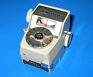 Der Canon Booster Eines der interessantesten Zubehöre war der Booster für die FT QL und die Pellix QL. Später wurde er auch für die FTb verwendet. Der Zusatz passt in den Zubehörschuh und kuppelte über das Batteriefach mit der Kamera. Er brachte die Messempfindlichkeit auf den Bereich von LW -3,5 bis LW 18, bei der Pellix sogar ab LW -4,5 bei ISO 100/21°. In der Praxis wurde auf das Objekt fokussiert, dann wurde in einem Fenster des Boosters eine Messnadel mit einer Kelle zur Deckung gebracht. Die Ablesung ergab direkt eine Verschlusszeit, die auf die Kamera übertragen bzw. extern getimt wurde, wenn sie länger war als 1 Sek. Der Booster ließ sich bis max. 60 Sek. ablesen. |