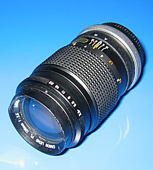 Canon Normalobjektiv FL 1:1,8 / 50 mm Sogenannte Normalobjektive entsprechen weitgehend den Sehgewohnheiten des menschlichen Auges. Hier handelt es sich um das weniger lichtstarke, "normale" FL-Normal-Objektiv. Bildwinkel 46° Glieder/Linsen 4/6 kleinste Blende 16 Naheinstellgrenze 0,6 m Filterdurchmesser 48 mm Gewicht 280 g |