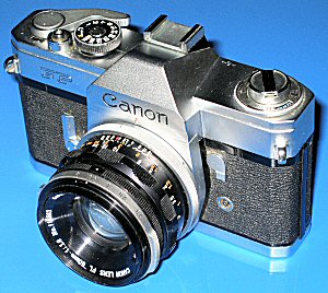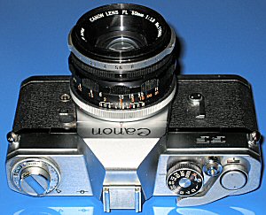 Die Canon FP - eine neue Generation Die Canon FP ist die kleine Schwester der Canon FX. Genau wie diese ist die FP für die Aufnahme von FL-Objektiven konstruiert - der große Unterschied bestand darin, dass in die Canon FP kein Belichtungsmesser eingebaut wurde. Dieses Geschwisterpaar FX/FP legte den Grundstein für viele folgende Modelle, einschließlich der professionellen F-1. Auch die FP war mit Spiegelvorauslösung ausgestattet und verfügte über auch ansonsten gleiche und somit sehr respektable technische Voraussetzungen. Technische Daten: Erscheinungsjahr: 1964 Typ: Einäugige Spiegelreflexkamera Bajonett: Canon FL Sucheranzeige: Schnittbildindikator Messzelle: kein Belichtungsmesser eingebaut Messzelle-Zubehör: Aufsteck-CdS - mit Blende und Verschlusszeit gekuppelt Filmempfindlichkeitsbereich: nur als Merkscheibe für eingelegten Film Automatiken: manuell Verschluss: horizontal ablaufender Tuchschlitzverschluss Zeitenbereich: 1-1/1000s, B, X Blitzsynchronzeit (X): 1/60 s Sonstiges: Selbstauslöser, Spiegelvorauslösung Maße (BxHxT): 141 x 90 x 43 mm Gewicht: 650 gr Innerhalb der Gruppe der Canon-Kameras scheint die FP ein ganz besonders seltenes Exemplar zu sein - in all den Jahren, seit ich Canon-Kameras sammle, habe ich nur ein einziges Mal eine FP angeboten gesehen und das ist die Kamera, die Sie hier sehen können. Ich vermute, sie ist deshalb so selten, weil sie keinen Belichtungsmesser spendiert bekam. Damit war die Kamera leider gegenüber Konkurrenzprodukten chancenlos - gab es doch zu dieser Zeit schon die ersten Kameras mit eingebautem Belichtungsmesser und Offenblendenmessung. Vielleicht glaubte man bei Canon, dass es Fotografen nichts ausmachen würde, die Belichtungsdaten extern abzulesen und dann die Werte auf die Kamera zu übertragen, aber das wohl nicht so ... Diese Kamerageneration war mit dem FL-Bajonett ausgestattet, was bedeutet, dass die zugehörigen FL-Objektive noch ohne Blendensimulator auskommen mussten. Die Folge war, dass eine Belichtungsmessung nur bei Arbeitsblende möglich war und hierfür abgeblendet werden musste. Diese sogenannte Arbeitsblendenmessung wurde erst mit Einführung des FD-Bajonetts abgeschafft, da sorgte dann ein sogenannter Blendensimulator dafür, dass das Messsystem wusste, welche Lichtstärke das Objektiv hat und dadurch Offenblendenmessung möglich wurde. Übrigens passen trotzdem die FD-Objektive an das FL-Bajonett und umgekehrt - unter Verlust der Offenblendenmessung beim FD-Bajonett und mit dem umständlicheren Weg der Arbeitsblendenmessung beim FL-Bajonett. |