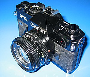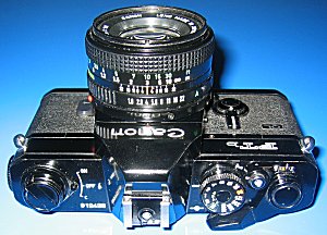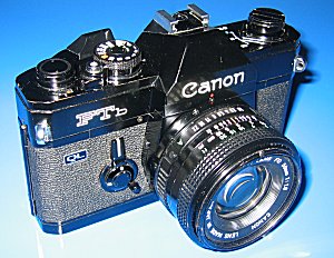 Canon FTb QL "Als Einäugige Spiegelreflexkamera der gehobenen Mittelklasse hat die FTb im Laufe der Jahre Stückzahlen von weit über einer Million erreicht. So gesehen konnte sie über lange Zeit hinweg als das eigentliche "Arbeitstier" dieser Reflexreihe gelten. [...] Sie ist eine Präzisionskamera, deren Ausstattung durchaus auch für eine ganze Reihe beruflicher Aufgaben ausreicht. [...] Interessant ist die Verwendung des gleichen Innenmeßsystems wie in der F-1, das bereits auf die hohen Aspirationen der FTb hindeutet und einen gezielten Einsatz möglich macht." (Auszug aus dem Buch: Günter Richter - Das Canon Reflex System) Technische Daten: Erscheinungsjahr: 1971 / 1973 in der neueren Version Einäugige 35-mm-Spiegelreflexkamera mit Schlitzverschluss Durchblicksucher mit feststehendem Pentaprisma Mattscheibe mit Fresnelllinse und Prismenscheibe Sichtbereich 94% des tatsächlichen Bildbereichs Vergrößerung 0,85-fach Sucheranzeige: Meßzeiger und Blendenöffnungszeiger, rotes Anzeigefeld für untere Grenze des Funktionsbereichs, Meßmarke für die Arbeits-blendenmessung, Batterieprüfung Erschütterungsfreier Spiegel, verriegelbar in der obersten Stellung Bajonettring des Typs FD Schlitzverschluss von 1/1000 s bis 1 s und B Blitzsynchronzeit 1/60 s Auslöseknopf verriegelbar Filmempfindlichkeit von 25 - 2000 ASA Eingebauter Belichtungsmesser mit CdS-Fotozelle, Mittelpunkt-Messsystem zur Ausmessung von 12% der Bildfläche Einlegen des Films mit Schnellladesystem (QL = Quick-Load) Schnellaufzughebel durch einmalige Schwenkung um 174° Doppelbelichtung möglich Größe: 144 x 93 x 43 mm Gewicht: 740 g (nur Gehäuse) Die hier abgebildete Kamera ist eine FTb in der sehr seltenen schwarzen Ausführung, leider nicht frei von Gebrauchsspuren, welche sich vor allem durch leicht abgewetzte Gehäusekanten zeigen. Trotzdem ist die Kamera noch in sehr gutem Zustand, wenn man ihr Alter bedenkt. Die FTb ist quasi die zweite Generation der Canon FT, erkennbar an dem "b" in der Typenbezeichnung - dies bewirkte einen Wechsel von den Objektiven der FL-Reihe zu den neuen FD-Objektiven, welche eine Offenblendenmessung erlaubten. Dies war natürlich ein riesiger Fortschritt und erleichterte die Handhabung der Kamera enorm. Innerhalb der FT-Reihe war das abgebildete Modell wiederum ein Modell der 3. Generation (also die zweite Generation der FTb-Reihe), erkennbar vor allem an dem mit Kunststoff ummantelten Aufzugshebel. Eine canontypische Besonderheit war das Schnellladesystem QL (=Quick-Load), mit welchem damals viele Canon-Kameras ausgestattet waren. Auf dem unteren Bild ist rechts der spezielle Mechanismus zu erkennen, welcher das Einfädeln auf der rechten Spule weitgehend übernommen hat - warum es wohl irgendwann wieder heimlich, still und leise abgeschafft wurde? |