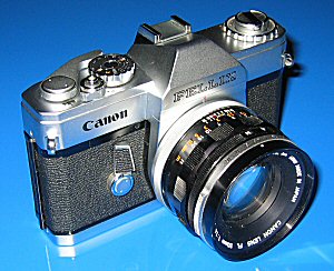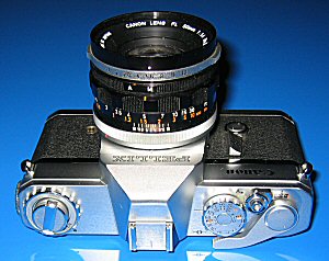 Die Canon Pellix - eine technische Sensation "Die Pellix baute auf dem Gehäuse der FX/FP auf, wies jedoch im Innenleben beträchtliche Unterschiede auf. So war sie mit dem ersten Canon Innenmesssystem ausgerüstet, bei dem eine CdS-Zelle aus dem Boden des Spiegelkastens hochgeschwenkt wurde und ihren Platz direkt vor dem Verschluss einnahm. Doch zur Belichtungsmessung musste das Objektiv durch Druck auf den Selbstauslösehebel in Richtung auf das Objektiv abgeblendet werden. Die Verschlussvorhänge waren aus Titanfolie, um Brandlöcher zu vermeiden. Die Verwendung von Titan in einer SLR, deren Schwingspiegel den Verschluss normalerweise vor der Sonne schützt, hatte seinen guten Grund: Der Name Pellix leitet sich nämlich von einer speziellen Spiegelform ab, vom Pellicle- oder Häutchenspiegel. Dabei handelt es sich um eine hauchdünne, feststehende Folie, die so verspiegelt ist, dass sie einen geringen Teil des Lichts in den Sucherstrahlengang ausspiegelt, den Rest jeodch geradlinig durchlässt. Damit gelang Canon die erste einäugige SLR, deren Spiegel zur Belichtung nicht mehr aus dem Weg geklappt werden musste. Um das System unter allen Bedingungen einsatzfähig zu machen, war die Pellix mit dem ersten Okularverschluss ausgerüstet, welcher durch einen um den Rückspulknopf angebrachten Ring betätigt wurde. Die Produktion der Pellix wurde Ende 1965 aufgenommen und ein Jahr aufrecht erhalten. Danach erschien ein zweites Modell, die Pellix-QL. Zum Verhängnis wurde den Pellix letztlich ihr größter Trumpf, der Pellicle-Spiegel. Er war so dünn und empfindlich, dass schon die geringste Berührung genügte, um ihn zu beschädigen - es war praktisch unmöglich, Fingerabdrücke oder Verschmutzungen zu beseitigen. Das Prinzip des Pelliclespiegels erlebte seine Auferstehung z.B. in der F-1 Schnell-schusskamera und in der Canon EOS RT - in beiden wurde der Pellicle-Spiegel durch teilverspiegelte Glasspiegel mit vernünftiger Stabilität ersetzt." (Aus: Canon Handbuch- Das komplette Canon System, Laterna Magica-Verlag) Technische Daten: Einführung: 4/1965 Typ: Einäugige Spiegelreflexkamera Bajonett: Canon FL Einstellhilfen: Prismenraster Sucheranzeige: Messnadel Messzelle: CdS Messbereich: Lichtwert 1 - 18 Messsystem: Arbeitsblendenmessung Filmempfindlichkeitsbereich: 10 - 800 ASA Funktionen: manuell Verschluss: horizontal ablaufender Verschluss aus Titanfolie Zeitenbereich: 1 - 1/1000 s, B, X Blitzsynchronisation: 1/60 s Sonstiges: Selbstauslöser, Batterieprüfung, Pelliclespiegel Maße (BxHxT): 141 x 90 x 43 mm Gewicht: 700 g |