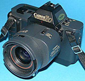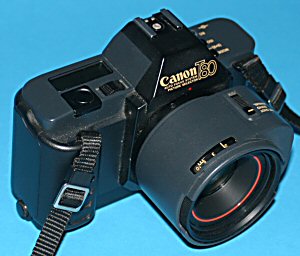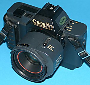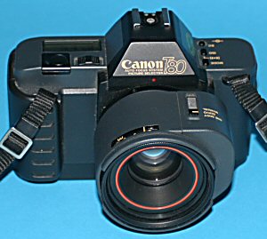 Die Canon T80 ist eine der außergewöhnlichsten Kameras aus dem Hause Canon - und so sieht sie ja auch aus. Schließlich war sie die erste Canon Spiegelreflexkamera mit Autofokus. Hierfür ging Canon einmal mehr einen anderen Weg als andere Hersteller und integrierte den Motor nicht im Kameragehäuse sondern im Objektiv selbst - so erklärt sich auch der seltsame Buckel am Objektiv. Dass dieser Weg der richtige war, zeigt sich bei den heutigen EOS-Objektiven mit USM (Ultraschallmotor). Alle Hersteller, die den Motor ins Gehäuse bauten, gerieten deutlich ins Hintertreffen und rüsten nach und nach doch um. | ||||||||||||||||||||||||||||||||||||||||||||||||||||||||||||||||||||||||||||||||||||