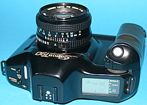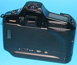 Technische Daten: Erscheinungsjahr: 1986 Typ: einäugige Spiegelreflexkamera Verschluss: Vertikal ablaufender Metallschlitzverschluss, elektronisch gesteuert Verschlusszeiten: 1/4000 bis 30 s, B Sucher: fest eingebauter Prismensucher Sucheranzeige: Digitale Leuchtanzeigen für Blende/Verschlußzeit Bedienungs- und Funktionsfehler mit <<EEEE>> und <<HELP>> "M" für manuell "*" für Meßwertspeicherung bei Selektiv- und Spotmessung Belichtungskorrektur mit +/- Punkt und 7-Segment-LCD-Digitalanzeige für Mehrfachspotmessung, Helllicht-/Schattenkorrektur, verbleibende Aufnahmen Blitzbereitschaftsanzeige und Blitzmesswertspeicherung Einstellscheibe: Standardsucherscheibe mit Schnittbildindikator und Mikroprismenring 7 weitere wechselbare Scheiben als Zubehör Messsystem: Mittenbetonte Integralmessung, Selektiv- oder Spotmessung Filmempfindlichkeit: ISO 6 - 6400, manuell oder DX-Codierung Belichtungssteuerung: Standard- und Varioprogrammautomatik mit 7 Programmen Blenden- und Zeitautomatik mit Overridefunktion Arbeitsblenden-Zeitautomatik Blitzautomatik Manuell Belichtungskorrektur: +/- 2 Stufen in 1/3 Schritten +/- 4 Stufen in 1/2 Schritten bei Helllicht-/Schattenkorrektur Blitzsynchronisation: 1/250 s Weitere Merkmale: Automatische Filmeinfädelung und automatischer Filmtransport mit bis 5 Bildern/s Großer LCD-Monitor an der Kameraoberseite, zur Kontrolle aller wichtigen Einstellungen Elektronikeinstellrad Maße: 151,1 x 121 X 69,4 mm Gewicht: 800 g | |||||||||||||||||||||||||||||||||||||||||||||||||||||||||||||||||||||||||||||||||||||