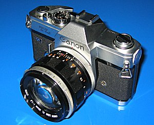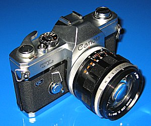 Die Canon TL "Die Canon TL-QL war die letzte der Canon Kameras mit FL-Bajonett. Dabei handelte es sich im wesentlichen um eine abgespeckte FT-QL ohne Spiegelvorauslösung, ohne 1/1000 s und ohne Batterieprüfer. Sie war gedacht als preisgünstige Ausführung der FT-QL ohne Zugeständnisse an die Leistung - und diesen Zweck erfüllte sie vorbildlich. [...] Das Innenleben der FT und TL war ausgesprochen stabil und machte selten Probleme. Wegen ihrer sauberen, wohldurchdachten Konstruktion waren diese Kameras sehr leicht zu reparieren." (Aus dem Buch: Handuch - Das komplette Canon System - Laterna Magica) Technische Daten: Typ: Einäugige Spiegelreflexkamera mit feststehendem Dachkantprisma Einführungsdatum: 1968 Bajonett: Canon FL Einstellhilfe: Prismenraster Sucheranzeige: Messnadel und feststehender Index Messzelle: CdS Messbereich: Lichtwert 2,5 - 18 Messung bei Arbeitsblende Filmempfindlichkeitsbereich: 25 - 2000 ASA Funktionen: manuell Verschluss: horizontal ablaufender Tuchschlitzverschluss Zeitenbereich: 1 - 1/500 s, B, X (bei 1/60 s) Maße BxHxT (mm): 144 x 93 x 43 Gewicht: 720 gr. Ebenso wie die Canon FT enthielt sie ein weiterentwickeltes Innenmeß-system. Canon setzte ein interessantes Messsystem ein - die Kondensorlinse über der Einstellscheibe ist in der Mitte im Winkel von 45° geteilt und eine dieser Flächen ist teilverspiegelt. Damit ergibt sich ein Rechteck in der Mitte der Kondensorlinse, das zum Strahlenteiler wird und den Hauptteil des Lichts nach oben in das Dachkantprisma und zum Okular ablenkt, einen geringen Anteil jedoch im Winkel von 90° auf eine CdS-Zelle an einer Seite der Einstellscheibe wirft - alles klar? :-) Dies gestattet jedenfalls eine sehr genaue Belichtungsmessung über das teilverspiegelte Messfeld. Dieses erscheint im Sucher leicht dunkler und läßt sich deshalb leicht auf einem gewünschten Detail platzieren. Diese Kamera ist mit einem fantastischen Objektiv ausgestattet - dem extrem lichtstarken 1:1,2/55 mm. Durch die FL-Konfiguration fehlt leider der Blendensimualtor, so dass es nicht vollwertig an den FD-Bajonetten verwendet werden kann, sondern nur mit Arbeitsblenden-Messung. Nähere Details zu diesem Objektiv finden Sie auf der Seite "FL-Zubehör" über den unten stehenden Link. |