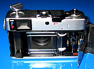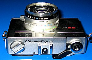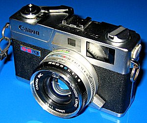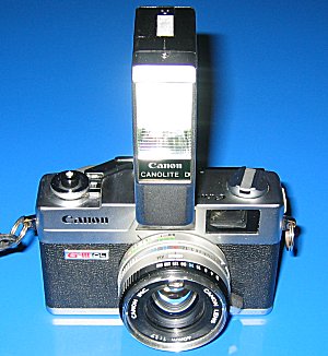 Die Canonet 17QL GIII Die Canonet-Reihe war eine Ende der 70er/Anfang der 80er Jahre produzierte Kleinbild-Sucherkamera-Reihe. Die Kameras zeichneten sich aus durch ihr damals sehr modernes und kompaktes Design. Für Sucherkameras ungewöhnlich waren sie mit Schnittbildentfernungsmesser und Belichtungsautomatik ausgestattet. Eine Besonderheit war auch die Anzeige der Belichtungszeit durch eine in den Sucher eingespiegelte Anzeige-Leiste mit Messnadel. Diese hier gezeigte Canonet wurde konstruiert, um den Leica-Kameras Konkurrenz zu machen - dafür besaßen sie ein hochlichtstarkes und ultrascharfes Objektiv - auch heute noch ist die Canonet 17 eine beliebte und begehrte Kamera, was sich auch in den Preisen widerspiegelt. Die Bezeichnung steht für die maximale Blendenöffnung von 1,7 (=17), Film-Schnellladesystem (QL=Quickload) und überarbeitete 3. Version (G=Grade up, III=3.Generation). Technische Daten: Typ: 35 mm Kleinbildkamera Objektiv: Canon-Objektiv 40 mm, Lichtstärke 1:2,8 Aufbau: 4 Linsen in 3 Baugruppen Entfernungseinstellung: Schnittbildentfernungsmesser, gekuppelt Verschluss: Programmierter verschluss, 1/30 - 1/620 s Elektrisches Messauge: Hochempfindliche CdS-Fotozelle Kupplungsbereich: Lichtwert 8 bis Lichtwert 17 bei ASA 100 Blendeneinstellung: automatisch oder von Hand, 2,8 - 16 Filmeinstellungen: ASA 25-400 Blitzaufnahmen: Automatisch mit Canon-Blitz Canolite D Blitzsynchronisation: X-Kontakt 1/30 s Größe: 125 x 75 x 61 mm Gewicht: 550 Gramm Zubehör: Tragetasche, Objektivdeckel Auf dem Bild links unten sehen Sie das canontypische Film-Schnelllade-System (QL), bei welchem der Film nur angelegt werden musste und dann selbst einfädelte. Das untere Bild zeigt die Kamera mit dem Canon Sppedlite D, welches eigens für die Canonet-Reihe entwickelt wurde und mit einer Blitzautomatik funktioniert. |