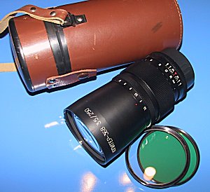 Mir 26-B 45mm f3.5 - Weitwinkel (enstpricht ca. 28mm bei 35mm-Kameras) Brennweite: 45mm Blende: f3.5 bis f22 Blickwinkel: 83 Grad Filtergröße: 82mm Konstruktion: 8 Linsen in 6 Gruppen Größe: 86 x 97 mm Gewicht: ca. 0,65 kg hier abgebildet mit Originalfiltern und -köcher | ||||||||||||||||||||||||||||||||||||||||||||||||||||||||||||||||||||||||||||||||||||