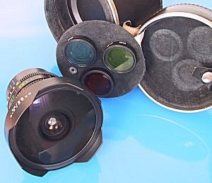 Arsat 30mm f3.5 - Fisheye (enstpricht ca. 19mm bei 35mm-Kameras) Brennweite: 30mm Blende: f3.5 bis f22 Blickwinkel: 180 Grad Filtergröße: 38mm (an Objektiv-Rückseite) Konstruktion: 10 Linsen in 6 Gruppen Größe: 110 x 96 mm Gewicht: ca. 1,0 kg hier abgebildet mit Originalköcher und -filtern | ||||||||||||||||||||||||||||||||||||||||||||||||||||||||||||||||||||||||||||||||||||