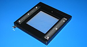 Die Mattscheibe kann zur besseren Beurteilung der Bildschärfe anstelle der Filmkassette eingesetzt werden und zeigt somit die Schärfe exakt auf der Filmebene an - besonders wichtig und vorteilhaft ist das bei Repro- oder Makrofotografie. | ||||||||||||||||||||||||||||||||||||||||||||||||||||||||||||||||||||||||||||||||||||