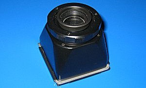 Die Sucherlupe kann entweder anstelle des Lichtschachtsuchers oben an der Kamera angesetzt werden oder direkt an der Mattscheibe, wenn diese anstelle der Filmkassette an der Kiev hinten angesetzt ist. Beide male verstärkt die Lupe das angezeigte Bild und erleichtert so den Scharfstell-vorgang insbesondere bei Repro- oder Makrofotografie oder eben auch sonst, wenn exakte Bildschärfe besonders wichtig und die Schärfentiefe extrem klein ist. | ||||||||||||||||||||||||||||||||||||||||||||||||||||||||||||||||||||||||||||||||||||