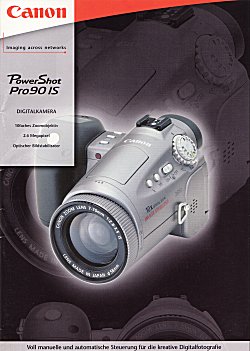 Prospekt zu Canon PowerShot Pro 90 IS von 2001 mit 16 Seiten in deutsch |