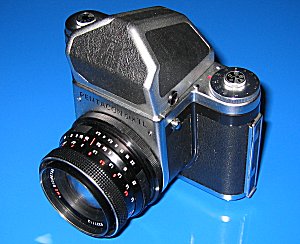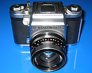 Meine Pentacon six TL "Den Ursprung dieser Kamerafamilie können wir in die fünfziger Jahre zurückverfolgen, als vom "VEB Kamerawerkstätten Niedersedlitz" im Jahre 1956 die erste Parktisix hergestellt wurde. Bereits wenige Jahre später bahnte sich eine Integrierung in die Pentacon-Gruppe an (ersichtlich durch die Änderung des Markenzeichens "KW" zum Sinnbild "Ernemann-Turm"), jeodoch immer noch unter der Bezeichnung Praktisix, später Praktisix II und endgültig ab 1964 als Pentacon six und Pentacon six TL. Der VEB Pentacon Dresden ging aus so renommierten Firmen wie der früheren Zeiss Ikon AG und anderen bekannten Firmen der Foto-Industrie hervor. Trotz dieser langen Tradition wurde das Kombinat von der Treuhand "abgewickelt" und 1992 endgültig geschlossen. Damit endete auch die Produktion, so dass Pentacon-Kameras nur noch auf dem Gebrauchtmarkt erhältlich sind. [...] Richtige Änderungen erfuhr die Praktisix 1967 beim Übergang zu Pentacon six [...] Neu war die Möglichkeit, 220er Rollfilme zu laden und 24 Aufnahmen zu machen. Verbessert wurden Blitzanschluss, Filmtransport und das Herausziehen der Spulengegenlager für den bequemeren Filmwechsel." (Aus: Mittelformat >>Ost<< von Stefan Scheibel, Lindemanns Verlag, 2000) Technische Daten: Typ: Einäugige Spiegelreflexkamera im Mittelformat Negativgröße: 60 X 60 mm - ca. 3,6 x größer als Kleinbildfotografie Automatikfunktionen: Keine Verschluss: Schlitzverschluss mit Zeiten von 1 - 1/1000 s und B Wechselsucher: Lichtschacht, PENTAPrisma, PENTAPrisma mit TTL-Belichtungsmessfunktion, Lupenaufsatz Blitz: verriegelbarer Blitzanschluss, Blitzfuss als Zubehör ansetzbar Bildanzahl: 12 oder 24 Bilder-Rollfilm, automatische Aufzugssperre Wechselobjektive: Bajonett, Objektive von 50 bis 1000 mm Brennweitenverschiebung zum Kleinbild: ca. 0,6-fach Zubehör: austauschbare Bildfeldlinsen, Winkelsucher, Augenmuschel, Balgennaheinstellgerät, Zwischenringe, Steckschuh für Zubehör, u.v.a. Besondere Vorteile: 24 Aufnahmen 6x6 cm hintereinader ohne Filmwechsel, absolute Zuverlässigkeit des Filmtransportes durch eine den Film abtastende Messwalze, vergleichsweise geringes Gewicht - die PENTACONsix ist unter den Kameras ihres Formates die leichteste. Die Pentacon six ist eine solide gefertigte Kamera der ehemaligen DDR, die so einfach wie eine mechanische Kleinbild-SLR zu bedienen ist. Im Vergleich zu den heutigen professionellen Mittelformatkameras hat sie zudem einen großen Vorteil - sie ist für den ambitionierten Fotoamateur finanziell erschwinglich. Trotz des günstigen Einstiegspreises bietet sie sehr gute Möglichkeiten für jedes Gebiet der Fotografie. Ein weiterer Vorzug gerade dieses Systems ist das umfangreiche Zubehör, das auch zu anderen Kameras kompatibel ist (Kiev 60, Exakta 66) und wiederum zu günstigen Gebrauchtpreisen zu erhalten ist. Insbesondere die hervorragenden Objektive von Zeiss und Schneider sind hier zu nennen. Die Produktion endete 1992 endgültig mit der Liquidation des Betriebes durch die Treuhand - hierdurch endete eine große Fotokamera-Tradition. Ich habe meine Pentacon über Ebay ersteigert. der große Vorteil hierbei war für mich, dass die Kamera kurz zuvor von einem Fachbetrieb instand gesetzt wurde und noch eine Garantie auf die ausgeführten Arbeiten bestand - so kann ich erst einmal bedenkenlos drauf los fotografieren. Auf den Bildern links sehen Sie die Kamera mit dem Dachkant-Prisma (auf den oberen Fotos) und mit dem aufgesetzten Lichtschacht (in geöffnetem Zustand von hinten abgebildet), das Bild darunter zeigt die Bedienelemnte der Kamera ohne aufgesetzten Sucher - mit Blick auf die Mattscheibe. Die beiden unteren Bilder zeigen die Pentacon SIX mit einem aufgesetzten TTL-Prisma. Dadurch wurde es möglich, die Belichtung durch das Objektiv zu messen, indem man das obige Rad dreht, bis der Messzeiger in der Mitte steht. Der gemessene Wert kann dann an dem Rad abgelesen werden und die passende und gewünschte Zeit-/Blenden-Kombination wird auf die Kamera übertragen. |