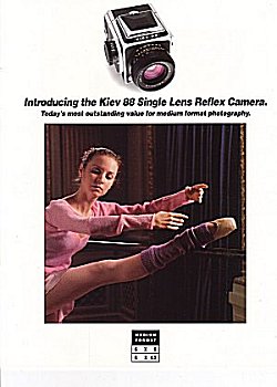 Hochglanz-Prospekt zur Kiev 88 in englischer Sprache - inklusive Objektive und Zubehör, sehr hochwertig gedruckt. 8 Seiten |